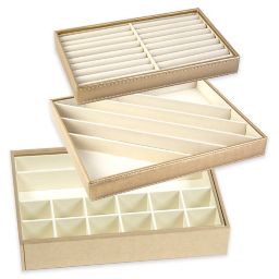 2 tier drawer inserts are available for those with deeper drawers or larger jewelry collections. Browse a huge selection of jewelry trays and jewelry drawer organizers that are designed to keep jewelry pieces large and small safely stored and on display between uses. Our line of jewelry drawer organizers offers versatility elegance and a luxurious finish.