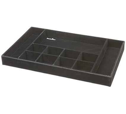 Jewelry organizer drawer insert. The low profile trays can be stacked on a shelf or stored inside a drawer. Jewelry tray drawer insert jewelry organizer velvet and wood tray for jewelry bracelets earrings necklaces rings durable and stackable handmade in usa 7 compartments black 15x12x2 black.