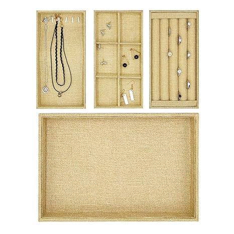 Designster Linen Jewelry Organizer Tray 4 In 1 Drawer Insert Trays Dresser Removable Stackable Jewelry Display Showcase Grid Storage Holder For